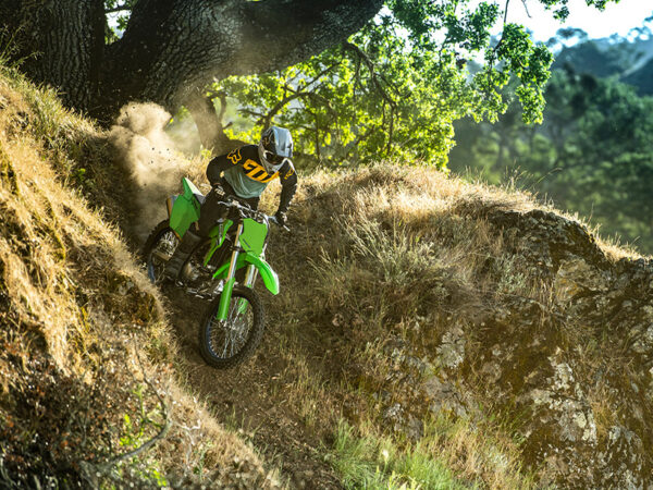 Como líder de la línea KLX®️ y con herencia directa de la linea KX, el KLX300R combina lo mejor del rendimiento del motor y del chasis para crear la máquina todoterreno más liviana y divertida.